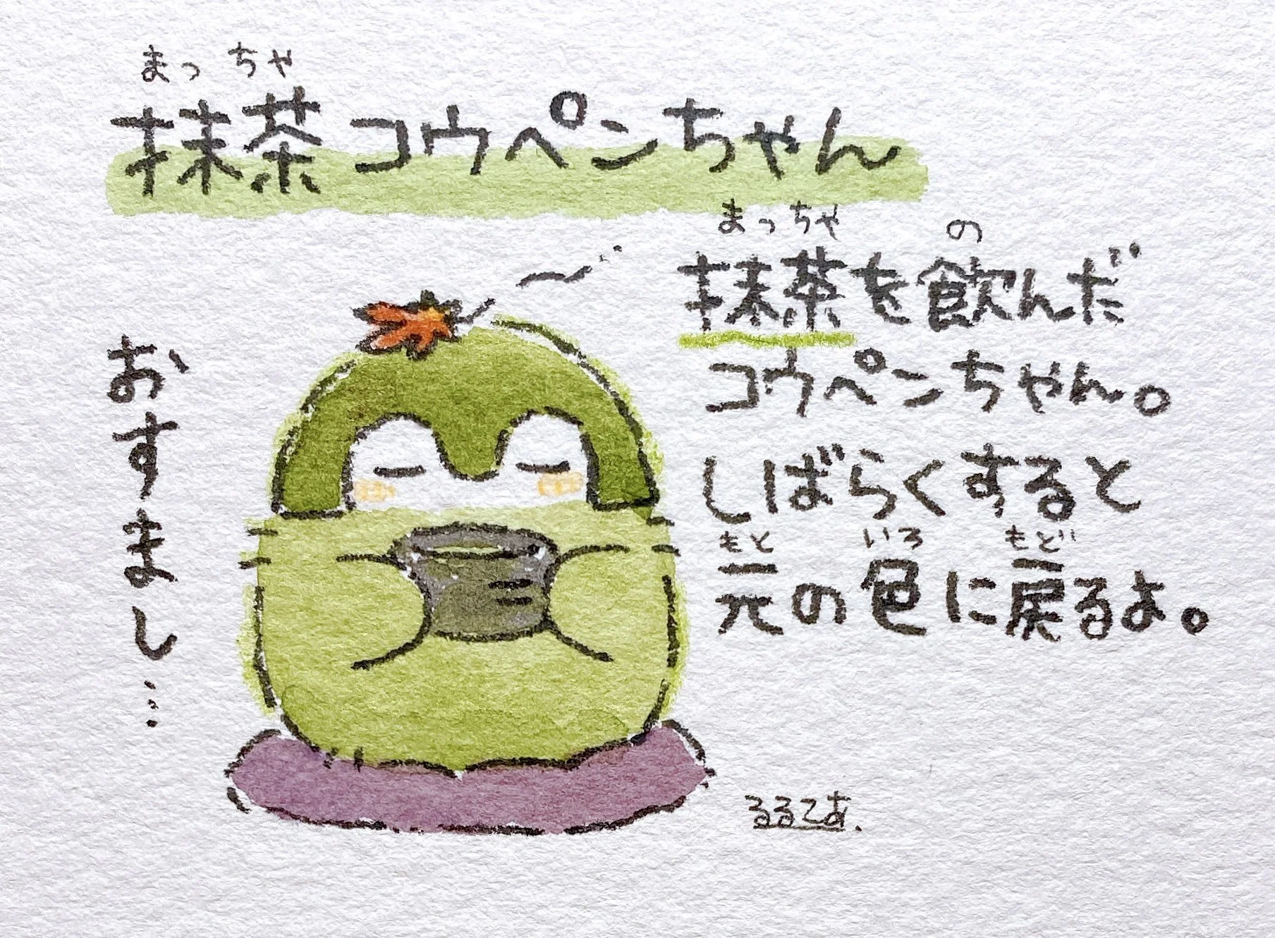 A Koupen-chan that drank strawberry milk. They'll return to their original color after a little while.