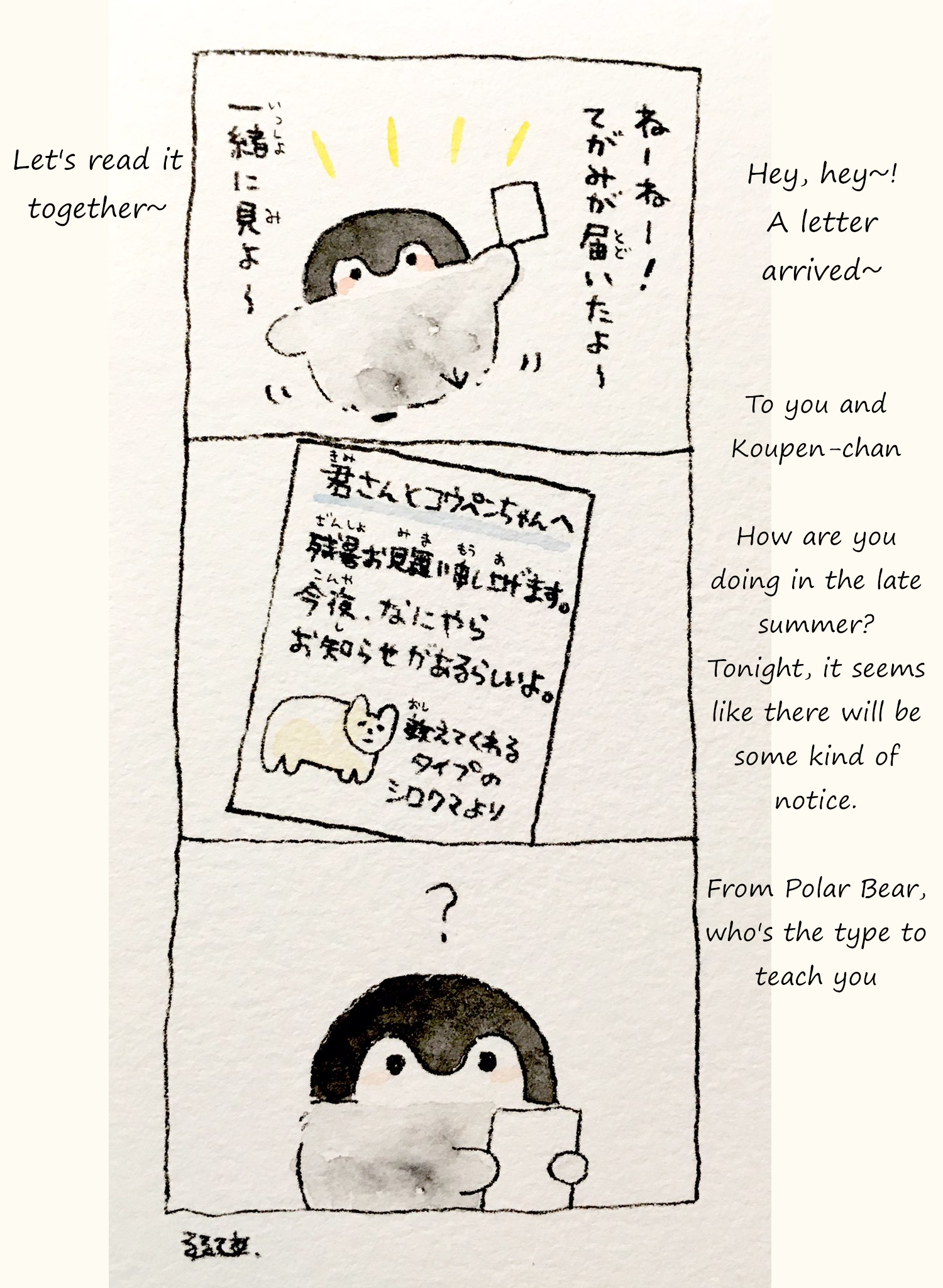 Koupen-chan: Hey, hey~! A letter arrived~ Let’s read it together~